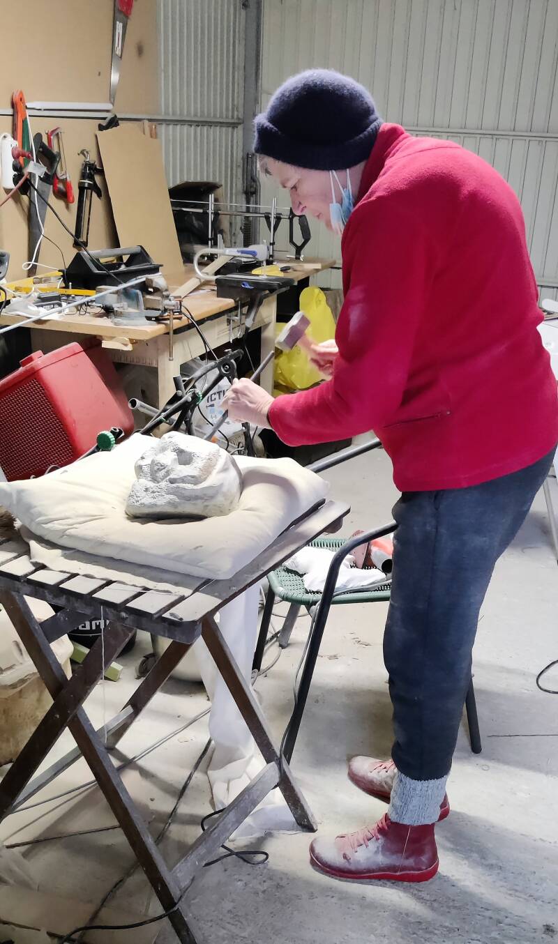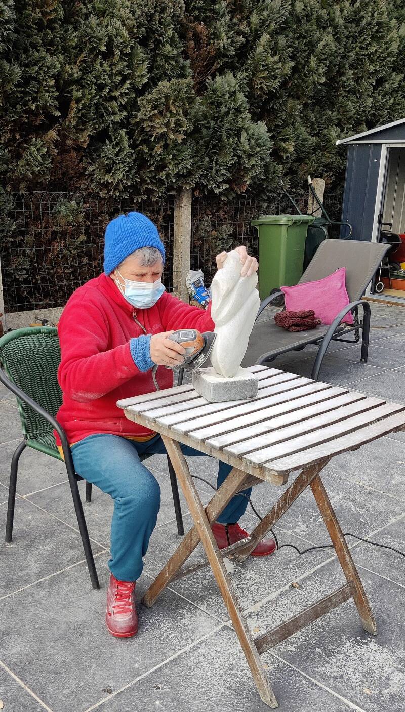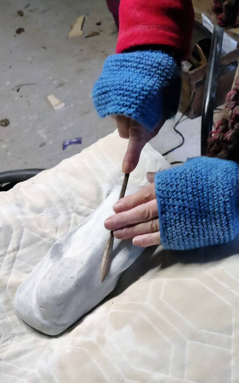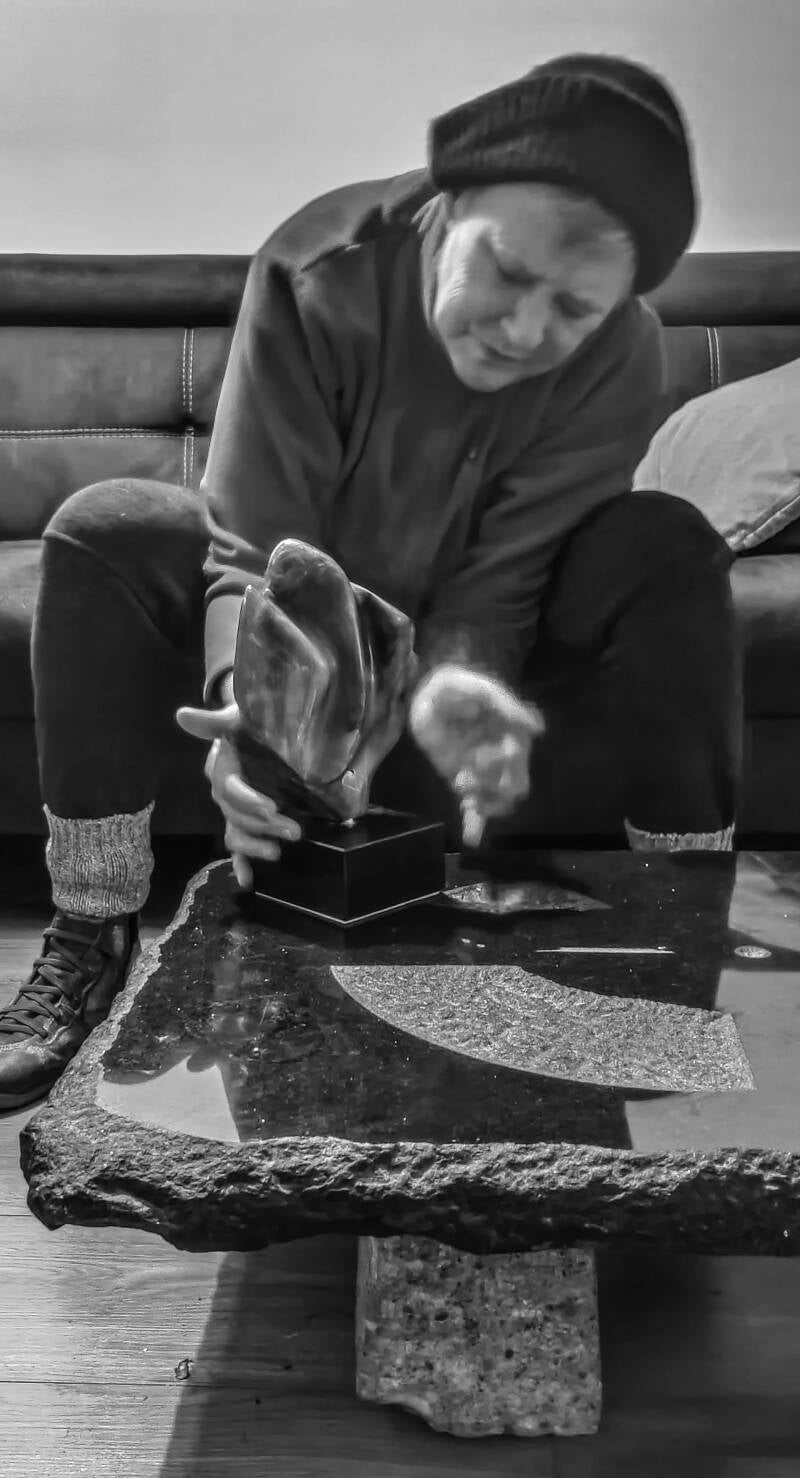 Tijdens mijn proces met de steen volg ik de vorm en de lijnen van de steen. Van daaruit laat ik het kunstwerk geboren worden.