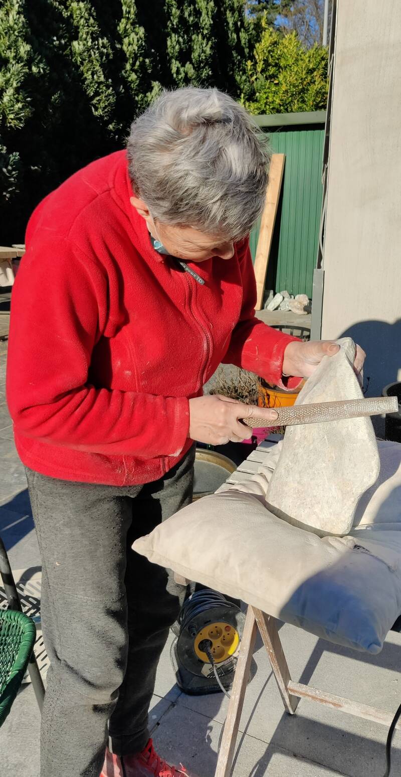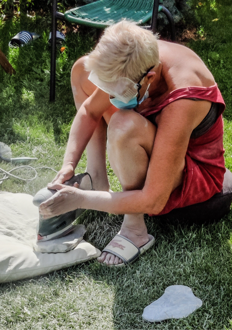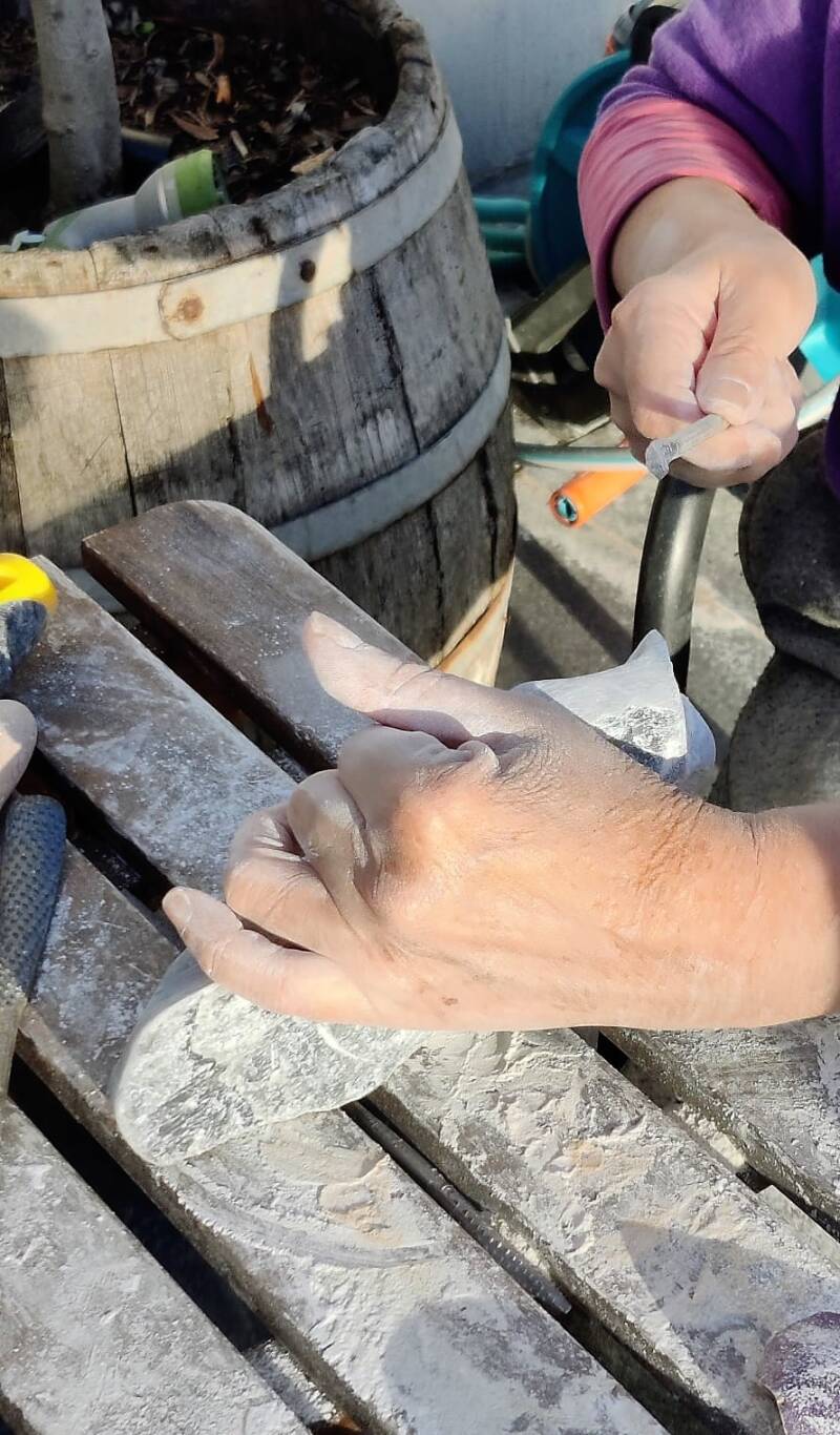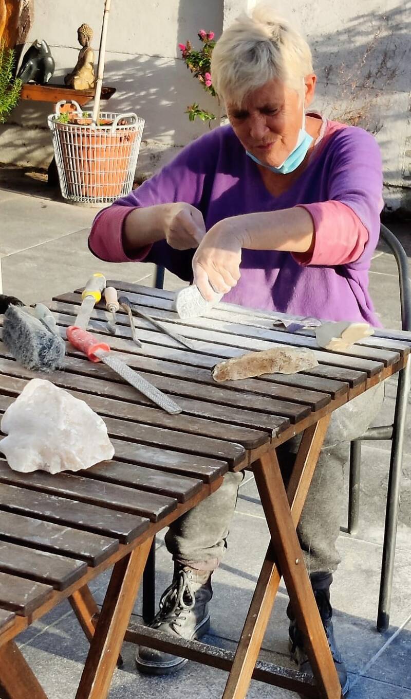 Tijdens mijn proces met de steen volg ik de vorm en de lijnen van de steen. Van daaruit laat ik het kunstwerk geboren worden.